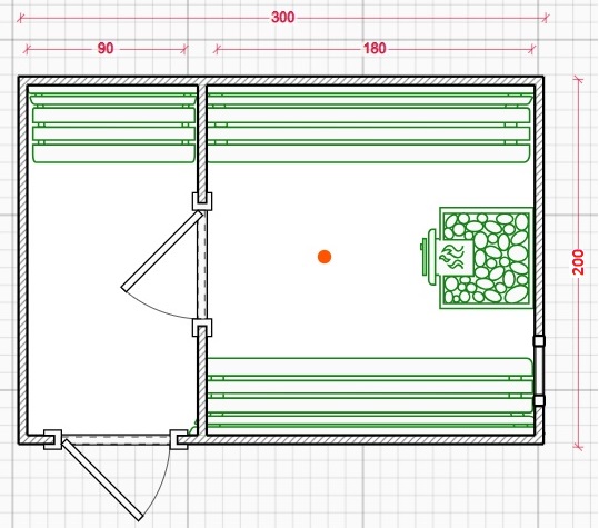 - Двери Парилка: каркасная-Липа или Стекло Бронза/Сатин