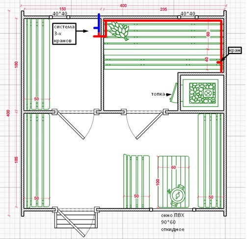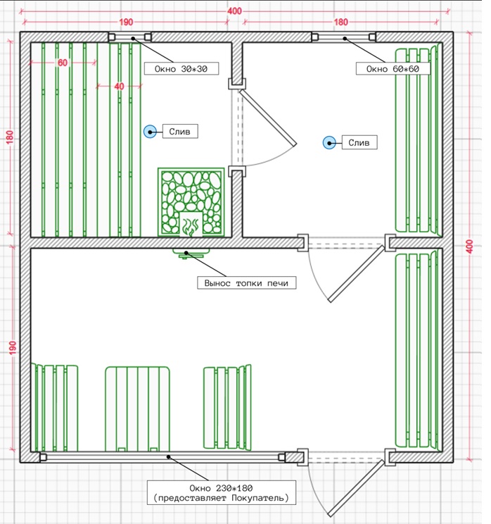 - Двери Парилка: каркасная-Липа или Стекло Бронза/Сатин
