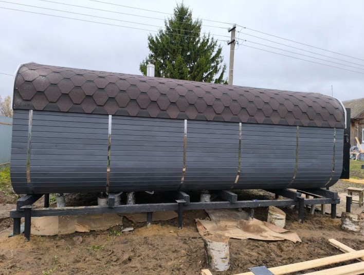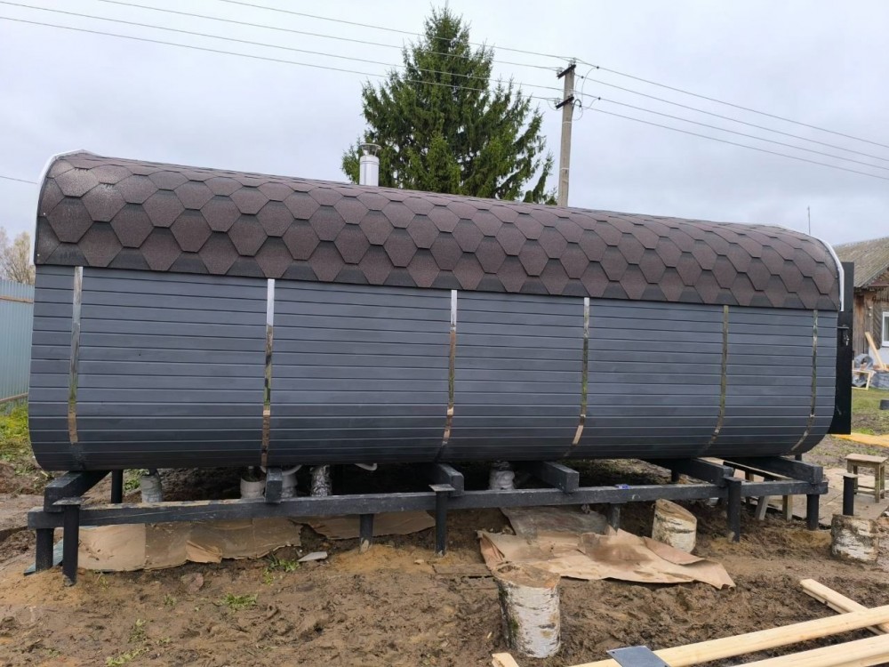 Баня поставляется в готовом виде и устанавливается на участке с помощью крана-манипулятора — или собирается на месте всего за один день. Идеальный выбор для тех, кто ищет надёжную, энергоэффективную и быстро монтируемую баню.