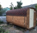 Баня поставляется в готовом виде и устанавливается на участке с помощью крана-манипулятора — или собирается на месте всего за один день. Идеальный выбор для тех, кто ищет надёжную, энергоэффективную и быстро монтируемую баню.
