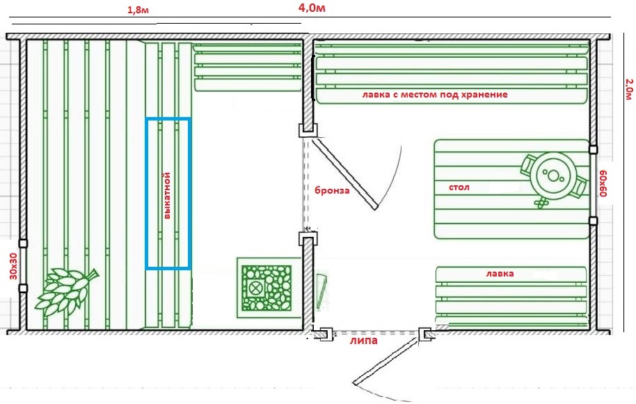 - Двери Парилка: каркасная-Липа или Стекло Бронза/Сатин