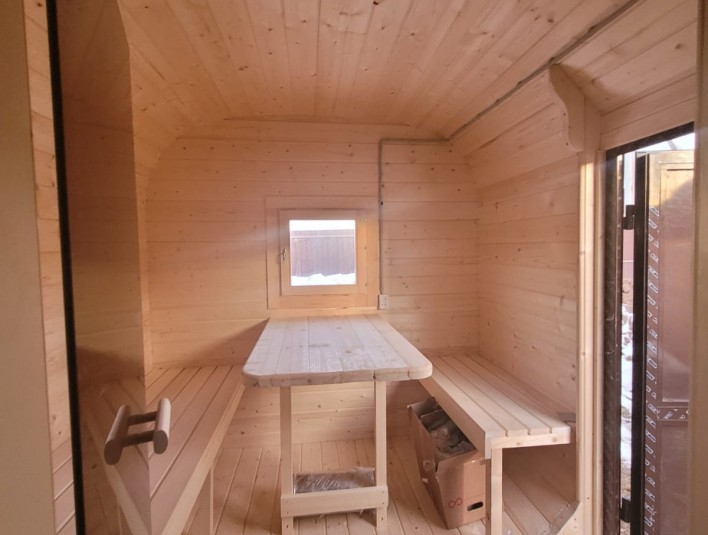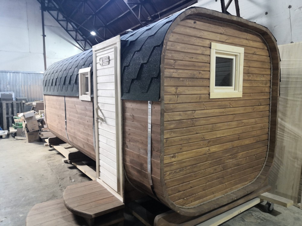 Баня поставляется в готовом виде и устанавливается на участке с помощью крана-манипулятора — или собирается на месте всего за один день. Идеальный выбор для тех, кто ищет надёжную, энергоэффективную и быстро монтируемую баню.