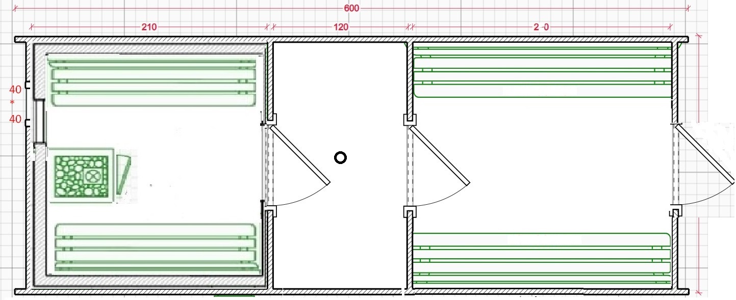 Баня-квадро, 6м, 3 отделения
