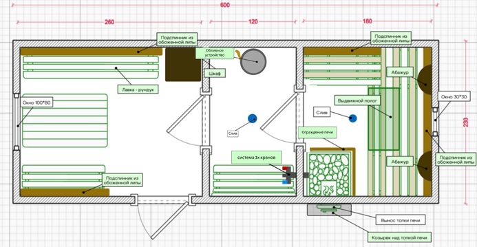 - Двери Парилка: каркасная-Липа или Стекло Бронза/Сатин