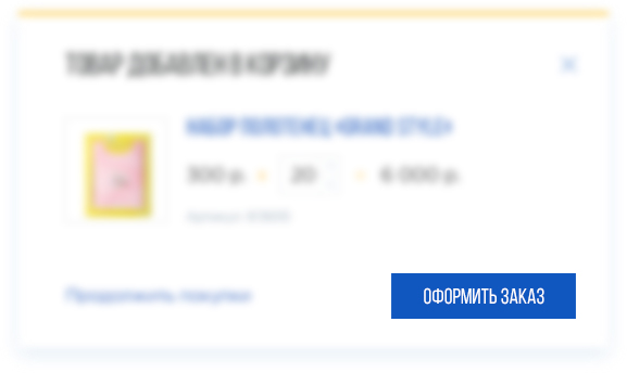 На экране появится всплывающее окно, в котором будет возможность либо вернуться к покупкам, нажав кнопку «Продолжить покупки», либо перейти к оформлению заказа, нажав кнопку «Оформить заказ» внизу.